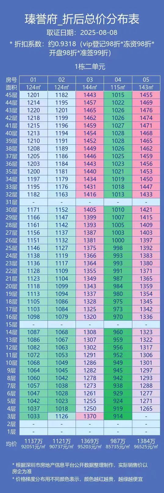 取证的是建面约115-143㎡的四房,综合折扣率约93.18%,折后均价9.3万/㎡。总价1200万左右,就能买海景四房,考虑到一线海景的稀缺性,以及造盘品质,这个项目还是挺值得关注的。